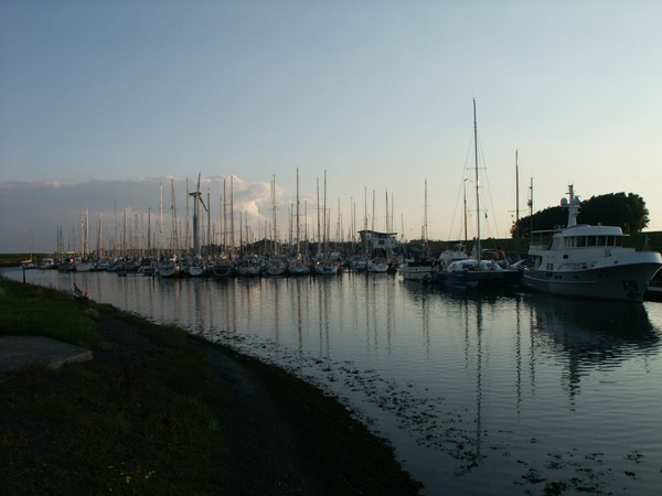 Vaar rustig de haven in om aan te leggen. De meeste schade aan schepen ontstaat doordat men te hard op de steiger af vaart. Het schip is te zwaar om bij grotere snelheid met de hand af te houden!